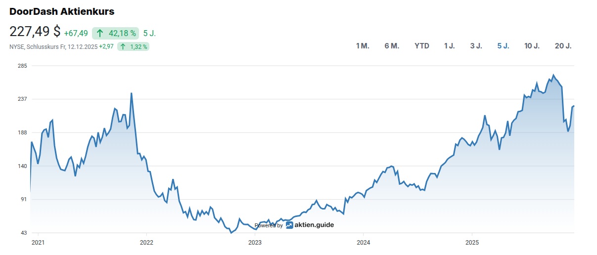 Quelle: Entwicklung des Aktienkurses der DoorDash-Aktie seit 2020
