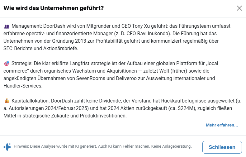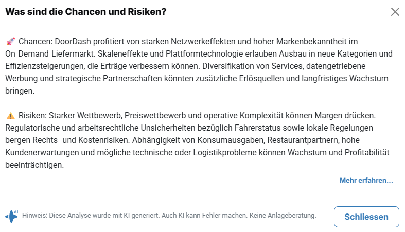 Quelle: Chancen und Risiken von DoorDash; AI Insights von aktien.guide