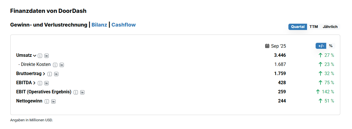 Quelle: Q3-Zahlen 2025 von DoorDash