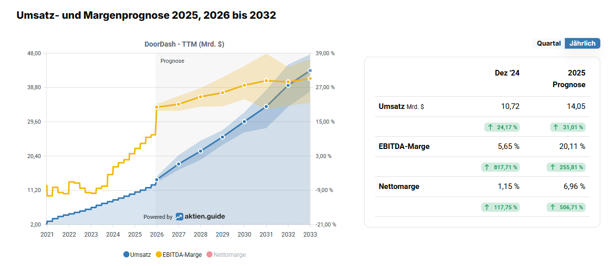 Quelle: Umsatz- und Margenprognose von DoorDash für die Jahre 2025, 2026 bis 2032