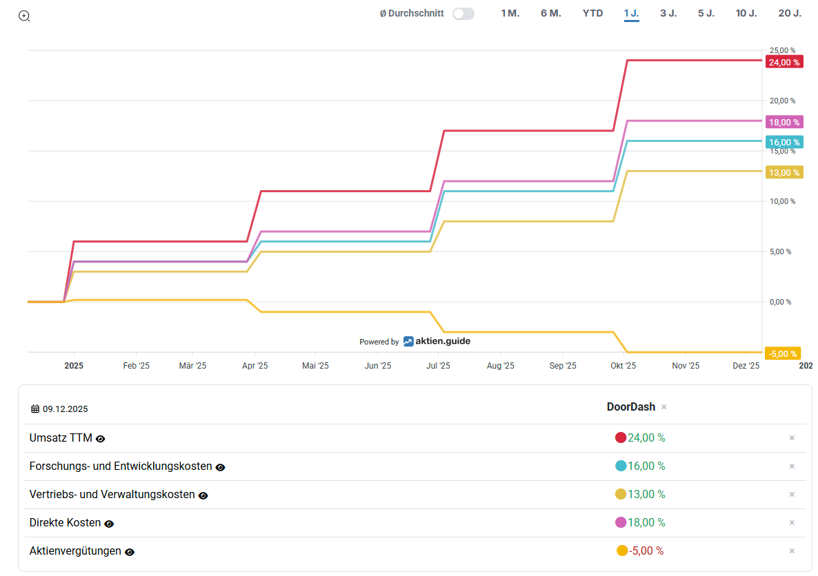 Quelle: Veränderung von Umsatz und Kosten im Jahr 2025 von DoorDash