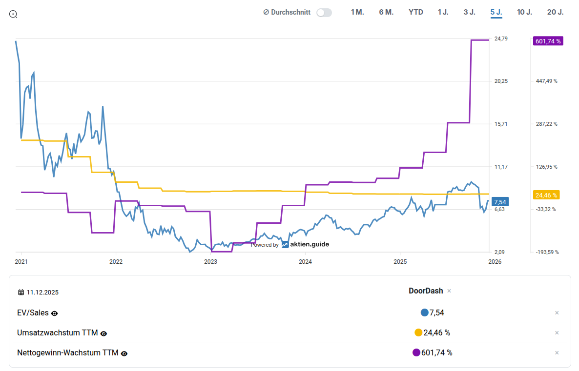 Quelle: Entwicklung von Bewertung und Wachstum der DoorDash-Aktie