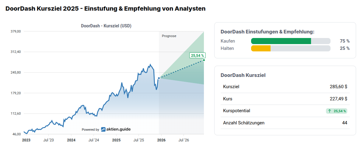 Quelle: DoorDash Kursziel 2025 - Einstufung & Empfehlung von Analysten