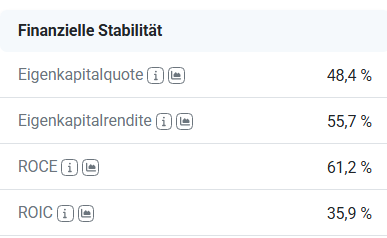 Auch der ROIC (Return on Invested Capital) liegt bei ca. 36 Prozent, was für eine sehr gute Kapitalverzinsung spricht.