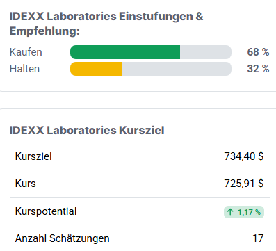 Die meisten Analysten scheinen von der Marktposition, den wiederkehrenden Umsätzen und der Pricing Power von IDEXX überzeugt zu sein.