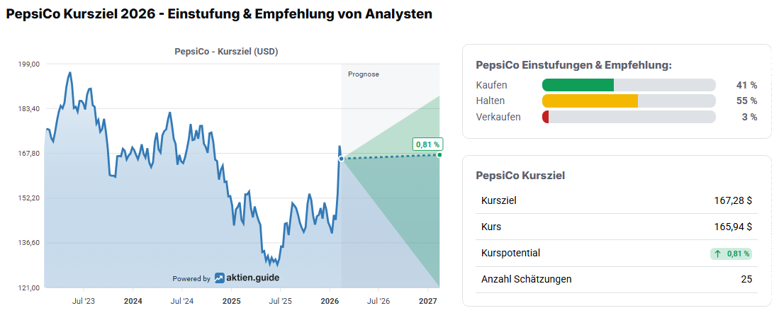 Quelle: PepsiCo 2026 Kursziel von Analysten