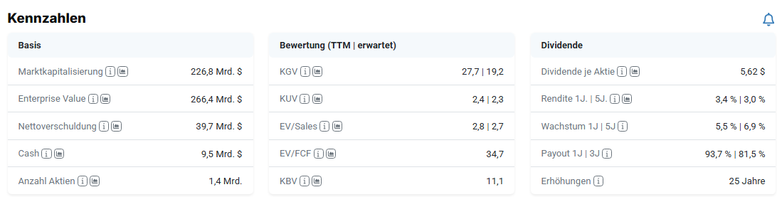 Quelle: PepsiCo Aktie Bewertungskennzahlen