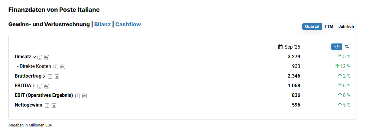 Die letzten Poste Italiane Quartalszahlen vom September 2025