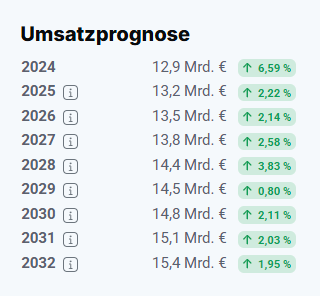 Auch die Analysten sind optimistisch gestimmt. Langfristig dürfte das italienische Konglomerat allerdings kaum mehr als 3 Prozent wachsen. Die Prognosen reichen bis 2032 und sehen einen Umsatz von 15,4 Milliarden vor. Das entspricht einer jährlichen Zuwachsrate von etwas über 2 Prozent in acht Jahren.