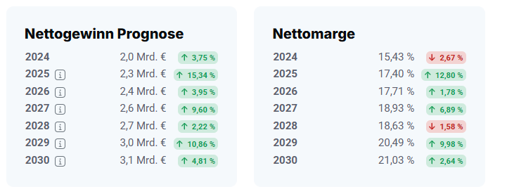 Betrachtet man die Ertragsseite, könnte das Gewinnwachstum leicht schneller ansteigen. Laut Analysten könnten aus zwei Milliarden 3,1 Milliarden im Jahr 2030 werden, was einem hohen einstelligen Wachstum entspricht. Verantwortlich dafür wären insbesondere eine erhöhte Effizienz und Skaleneffekte. Die Margen könnten demnach im kommenden Jahrzehnt bei über 20 Prozent liegen, nach zuletzt 15 Prozent.