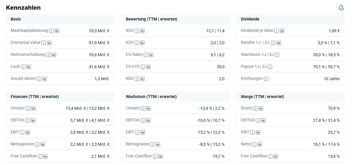 Ein Blick auf die wichtigsten Bewertungskennzahlen bestätigt die attraktive Ausgangslage. Das erwartete Kurs-Gewinn-Verhältnis (KGV) von 11,4 lässt die Aktie im Vergleich zu vielen Wettbewerbern und zum historischen Durchschnitt als vergleichsweise günstig erscheinen. Die Markterwartungen könnten also noch nicht vollständig das vorhandene Potenzial abbilden und somit Spielraum für eine weitere Kursentwicklung bieten. Auch der Free Cashflows von 2,1 Milliarden Euro belegt die Fähigkeit des Unternehmens, nachhaltig und effektiv Barmittel zu generieren, die wiederum für Dividenden, Investitionen und den Abbau von Schulden zur Verfügung stehen. Die Free Cashflows schwanken dabei um den Nettogewinn.