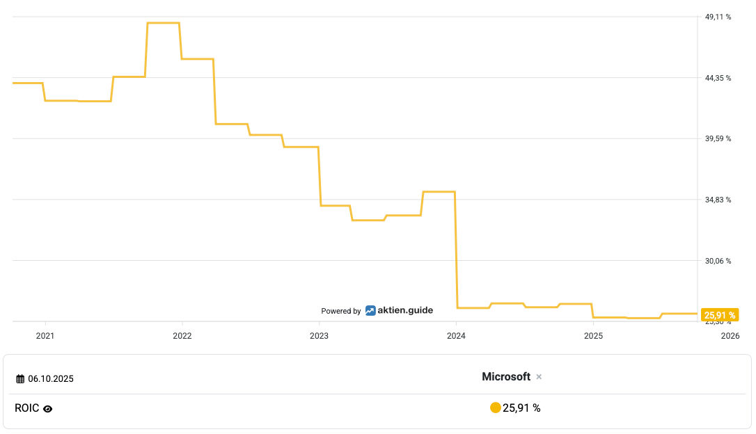 Microsoft ist ein gutes Beispiel für ein Unternehmen mit hoher Kapitalrendite. Die aktuelle ROIC liegt bei 26 %.