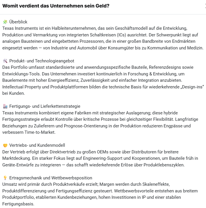 Ein tolles Unternehmen ist nicht immer direkt ein attraktives Investment. So lässt sich das Fazit zu Texas Instruments ziehen.