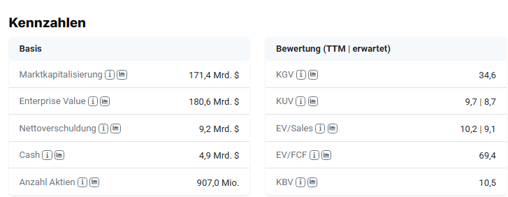 Quelle: Texas Instruments Aktie Bewertungskennzahlen