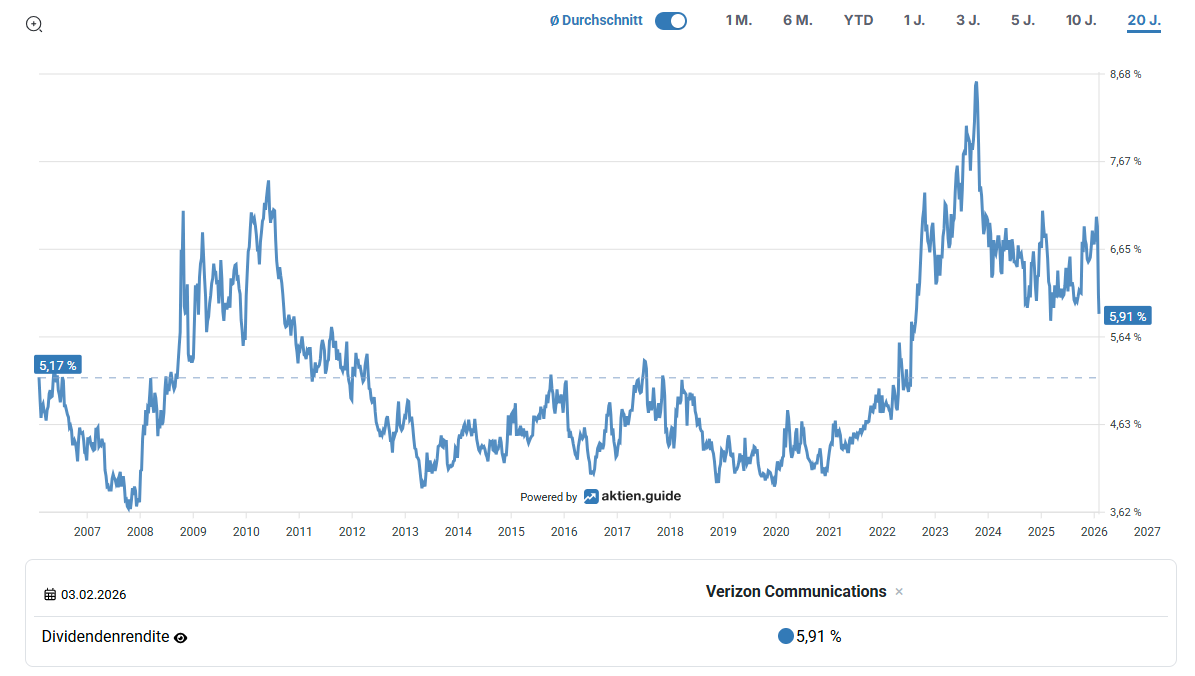 Quelle: Entwicklung der Dividendenrendite der Verizon-Aktie über 20 Jahre